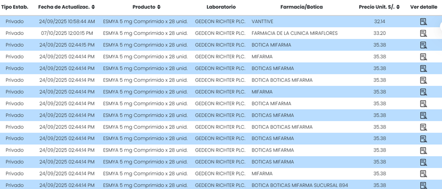 Según el Observatorio Peruano de Productos Farmacéuticos, Esmya® está disponible en más de 2,400 establecimientos farmacéuticos, lo que evidencia su amplia circulación pese a los antecedentes de inseguridad registrados por la EMA.